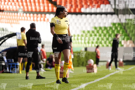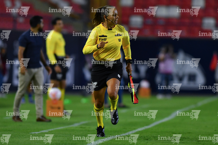 Aguascalientes, Aguascalientes, 1 de abril de 2026. Elva Gutiérrez Martínez, árbitra asistente, durante el partido correspondiente a la jornada 15 del torneo Clausura 2026 de la Liga BBVA MX Femenil, entre las Centellas del Necaxa y las Bravas de FC Juárez, realizado en el estadio Victoria. Foto: Imago7/ Pablo Ramírez