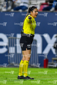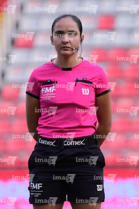 Puebla, Puebla, 1 de abril de 2026. Francia María González, árbitra central, durante el partido correspondiente a la jornada 15 del torneo Clausura 2026 de la Liga BBVA MX Femenil, entre el Club Puebla y el Club Querétaro, realizado en el Club Alpha 3. Foto: Imago7/Mireya Novo