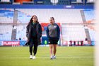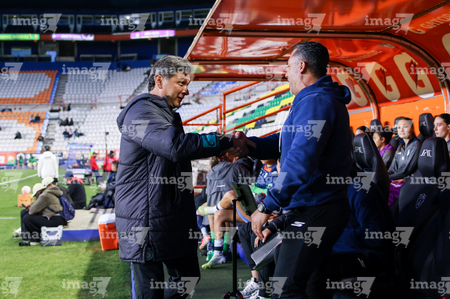 Pachuca, Hidalgo, 5 de abril de 2026. Armando Martínez y Karla Nieto durante el partido correspondiente a la jornada 16 del torneo Clausura 2026 de la Liga BBVA MX Femenil, entre las Tuzas del Pachuca y las Esmeraldas del León, realizado en el estadio Hidalgo. Foto: Imago7/ Jacqueline Pedraza