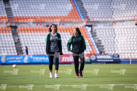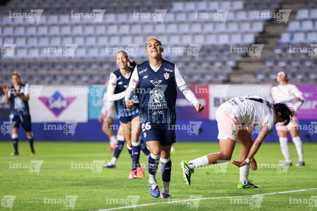 Pachuca, Hidalgo, 5 de abril de 2026. Mayalu Rausch y Embajadora, durante el partido correspondiente a la jornada 16 del torneo Clausura 2026 de la Liga BBVA MX Femenil, entre las Tuzas del Pachuca y las Esmeraldas del León, realizado en el estadio Hidalgo. Foto: Imago7/ Jacqueline Pedraza