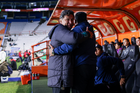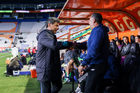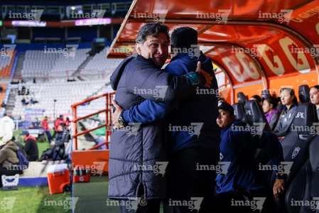 Pachuca, Hidalgo, 5 de abril de 2026. Edwin Santibañez, auxiliar técnico y Óscar Torres, director técnico, durante el partido correspondiente a la jornada 16 del torneo Clausura 2026 de la Liga BBVA MX Femenil, entre las Tuzas del Pachuca y las Esmeraldas del León, realizado en el estadio Hidalgo. Foto: Imago7/ Elizabeth Hernández