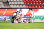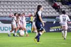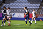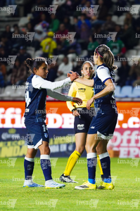 Pachuca, Hidalgo, 5 de abril de 2026. Jugadoras de Tuzas, durante el partido correspondiente a la jornada 16 del torneo Clausura 2026 de la Liga BBVA MX Femenil, entre las Tuzas del Pachuca y las Esmeraldas del León, realizado en el estadio Hidalgo. Foto: Imago7/ Jacqueline Pedraza
