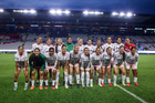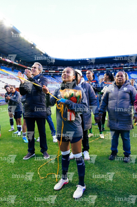 Pachuca, Hidalgo, 5 de abril de 2026. Protocolo, durante el partido correspondiente a la jornada 16 del torneo Clausura 2026 de la Liga BBVA MX Femenil, entre las Tuzas del Pachuca y las Esmeraldas del León, realizado en el estadio Hidalgo. Foto: Imago7/ Jacqueline Pedraza
