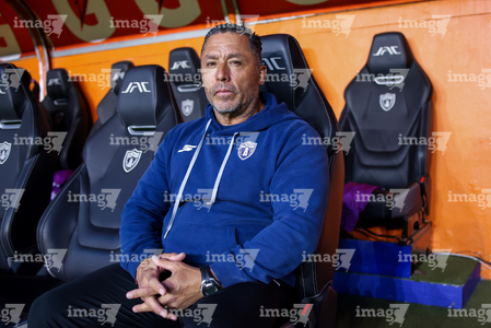 Pachuca, Hidalgo, 5 de abril de 2026. Edwin Santibañez, auxiliar técnico, durante el partido correspondiente a la jornada 16 del torneo Clausura 2026 de la Liga BBVA MX Femenil, entre las Tuzas del Pachuca y las Esmeraldas del León, realizado en el estadio Hidalgo. Foto: Imago7/ Elizabeth Hernández