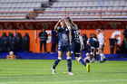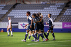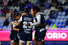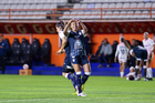 Pachuca, Hidalgo, 5 de abril de 2026. Jugadoras del León en festejo de gol, durante el partido correspondiente a la jornada 16 del torneo Clausura 2026 de la Liga BBVA MX Femenil, entre las Tuzas del Pachuca y las Esmeraldas del León, realizado en el estadio Hidalgo. Foto: Imago7/ Elizabeth Hernández