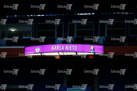 Pachuca, Hidalgo, 5 de abril de 2026. Palco en nombre de Karla Nieto, durante el partido correspondiente a la jornada 16 del torneo Clausura 2026 de la Liga BBVA MX Femenil, entre las Tuzas del Pachuca y las Esmeraldas del León, realizado en el estadio Hidalgo. Foto: Imago7/ Elizabeth Hernández