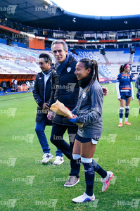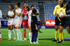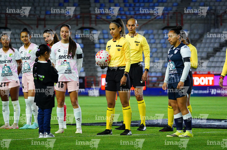 Pachuca, Hidalgo, 5 de abril de 2026. Protocolo, durante el partido correspondiente a la jornada 16 del torneo Clausura 2026 de la Liga BBVA MX Femenil, entre las Tuzas del Pachuca y las Esmeraldas del León, realizado en el estadio Hidalgo. Foto: Imago7/ Elizabeth Hernández