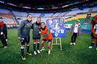Pachuca, Hidalgo, 5 de abril de 2026. Karla Nieto develó un palco en su nombre, durante el partido correspondiente a la jornada 16 del torneo Clausura 2026 de la Liga BBVA MX Femenil, entre las Tuzas del Pachuca y las Esmeraldas del León, realizado en el estadio Hidalgo. Foto: Imago7/ Jacqueline Pedraza