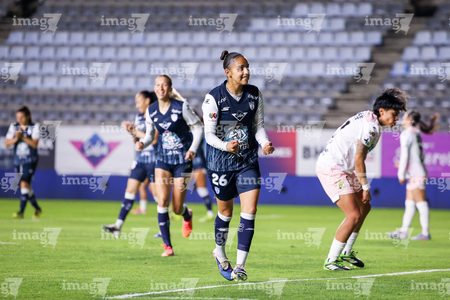 Pachuca, Hidalgo, 5 de abril de 2026. Itzell Alemán en festejo de gol durante el partido correspondiente a la jornada 16 del torneo Clausura 2026 de la Liga BBVA MX Femenil, entre las Tuzas del Pachuca y las Esmeraldas del León, realizado en el estadio Hidalgo. Foto: Imago7/ Elizabeth Hernández