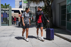 León, Guanajuato, 24 de abril de 2026. Chiara Singarella y Valeria Razo, durante el partido correspondiente a la jornada 17 del torneo Clausura 2026 de la Liga BBVA MX Femenil, entre las Esmeraldas del León y el Atlético San Luis, realizado en el estadio León. Foto: Imago7/