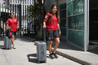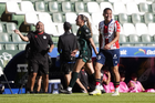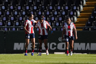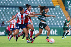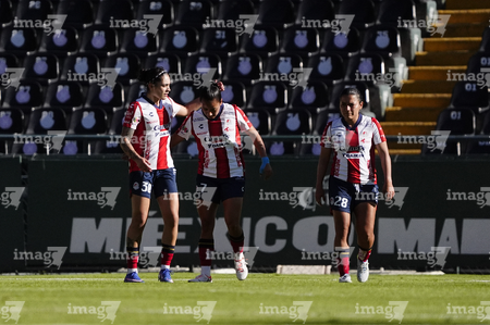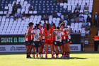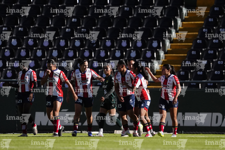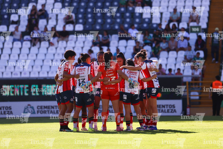 León, Guanajuato, 24 de abril de 2026. Jugadoras del Atlético de San Luis femenil, durante el partido correspondiente a la jornada 17 del torneo Clausura 2026 de la Liga BBVA MX Femenil, entre las Esmeraldas del León y el Atlético San Luis, realizado en el estadio León. Foto: Imago7/
