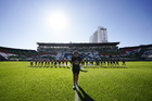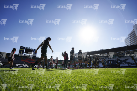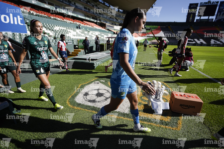 León, Guanajuato, 24 de abril de 2026. Protocolo, durante el partido correspondiente a la jornada 17 del torneo Clausura 2026 de la Liga BBVA MX Femenil, entre las Esmeraldas del León y el Atlético San Luis, realizado en el estadio León. Foto: Imago7/