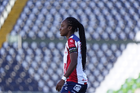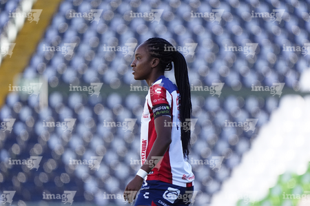 León, Guanajuato, 24 de abril de 2026. Farlyn Caicedo, durante el partido correspondiente a la jornada 17 del torneo Clausura 2026 de la Liga BBVA MX Femenil, entre las Esmeraldas del León y el Atlético San Luis, realizado en el estadio León. Foto: Imago7/