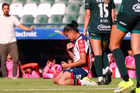 León, Guanajuato, 24 de abril de 2026. Karen Jasso (I), durante el partido correspondiente a la jornada 17 del torneo Clausura 2026 de la Liga BBVA MX Femenil, entre las Esmeraldas del León y el Atlético San Luis, realizado en el estadio León. Foto: Imago7/