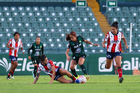 León, Guanajuato, 24 de abril de 2026. Chiara Singarella y Solange Lemos, durante el partido correspondiente a la jornada 17 del torneo Clausura 2026 de la Liga BBVA MX Femenil, entre las Esmeraldas del León y el Atlético San Luis, realizado en el estadio León. Foto: Imago7/
