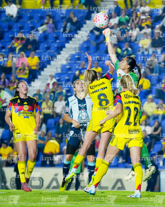 Ciudad de México, 24 de abril de 2026. Esthefanny Barreras ataja balon, durante el partido correspondiente a la jornada 17 del torneo Clausura 2026 de la Liga BBVA MX Femenil, entre las Águilas del América y las Tuzas del Pachuca, realizado en el estadio Ciudad de los Deportes. Foto: Imago7/ Diego Padilla