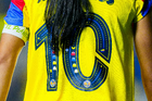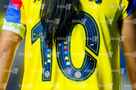 Ciudad de México, 24 de abril de 2026. Número de Scarlett Camberos colaboración con Pac-Man, durante el partido correspondiente a la jornada 17 del torneo Clausura 2026 de la Liga BBVA MX Femenil, entre las Águilas del América y las Tuzas del Pachuca, realizado en el estadio Ciudad de los Deportes. Foto: Imago7/ Diego Padilla