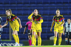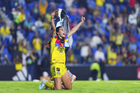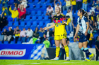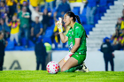 Ciudad de México, 24 de abril de 2026. Nina Nicosia en lamento, durante el partido correspondiente a la jornada 17 del torneo Clausura 2026 de la Liga BBVA MX Femenil, entre las Águilas del América y las Tuzas del Pachuca, realizado en el estadio Ciudad de los Deportes. Foto: Imago7/ Manlio Contreras