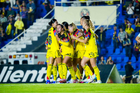 Ciudad de México, 24 de abril de 2026. Gol de Montserrat Saldivar, durante el partido correspondiente a la jornada 17 del torneo Clausura 2026 de la Liga BBVA MX Femenil, entre las Águilas del América y las Tuzas del Pachuca, realizado en el estadio Ciudad de los Deportes. Foto: Imago7/Etzel Espinosa