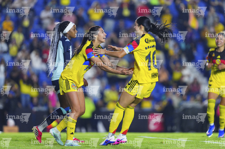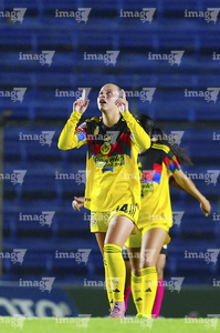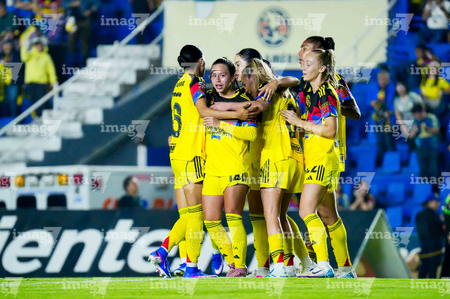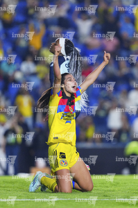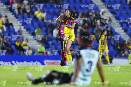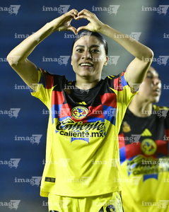 Ciudad de México, 24 de abril de 2026. Alexa Soto en festejo de gol, durante el partido correspondiente a la jornada 17 del torneo Clausura 2026 de la Liga BBVA MX Femenil, entre las Águilas del América y las Tuzas del Pachuca, realizado en el estadio Ciudad de los Deportes. Foto: Imago7/ Manlio Contreras