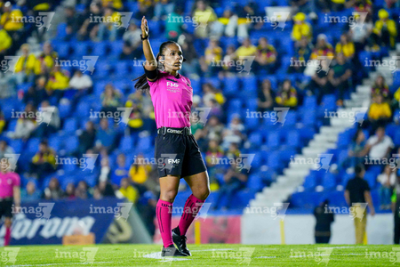 Ciudad de México, 24 de abril de 2026. Cesia Deysire Campos Sanchez árbitro central, durante el partido correspondiente a la jornada 17 del torneo Clausura 2026 de la Liga BBVA MX Femenil, entre las Águilas del América y las Tuzas del Pachuca, realizado en el estadio Ciudad de los Deportes. Foto: Imago7/ Diego Padilla