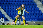 Ciudad de México, 24 de abril de 2026. Scarlett Camberos y Berenice Ibarra, durante el partido correspondiente a la jornada 17 del torneo Clausura 2026 de la Liga BBVA MX Femenil, entre las Águilas del América y las Tuzas del Pachuca, realizado en el estadio Ciudad de los Deportes. Foto: Imago7/ Diego Padilla