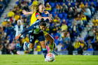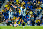 Ciudad de México, 24 de abril de 2026. Nina Nicosia y Karina Rodríguez, durante el partido correspondiente a la jornada 17 del torneo Clausura 2026 de la Liga BBVA MX Femenil, entre las Águilas del América y las Tuzas del Pachuca, realizado en el estadio Ciudad de los Deportes. Foto: Imago7/ Diego Padilla