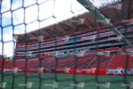 Tijuana, Baja California, 24 de abril de 2026. Panorámica del estadio, durante el partido correspondiente a la jornada 17 del torneo Clausura 2026 de la Liga BBVA MX Femenil, entre las Xolas de Tijuana y las Cañoneras del Mazatlán FC, realizado en el estadio Caliente. Foto: Imago7/Alejandro Gutiérrez Mora