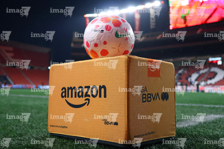 Tijuana, Baja California, 24 de abril de 2026. Balón de futbol Nike Control sobre caja de Amazon, durante el partido correspondiente a la jornada 17 del torneo Clausura 2026 de la Liga BBVA MX Femenil, entre las Xolas de Tijuana y las Cañoneras del Mazatlán FC, realizado en el estadio Caliente. Foto: Imago7/ David Vega