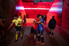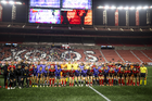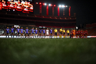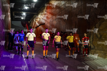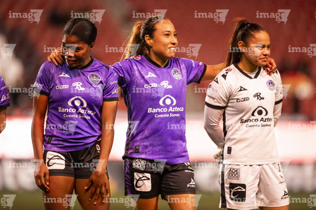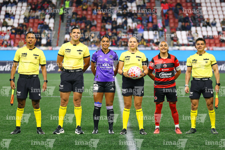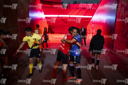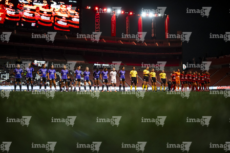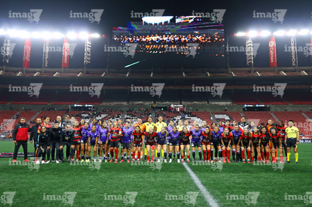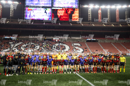 Tijuana, Baja California, 24 de abril de 2026. Protocolo, durante el partido correspondiente a la jornada 17 del torneo Clausura 2026 de la Liga BBVA MX Femenil, entre las Xolas de Tijuana y las Cañoneras del Mazatlán FC, realizado en el estadio Caliente. Foto: Imago7/Alejandro Gutiérrez Mora