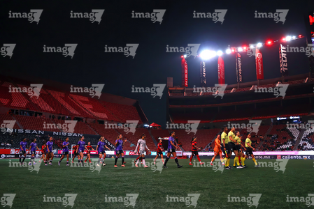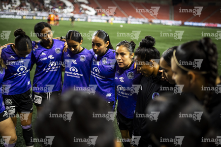 Tijuana, Baja California, 24 de abril de 2026. Protocolo, durante el partido correspondiente a la jornada 17 del torneo Clausura 2026 de la Liga BBVA MX Femenil, entre las Xolas de Tijuana y las Cañoneras del Mazatlán FC, realizado en el estadio Caliente. Foto: Imago7/ David Vega