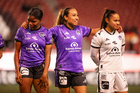 Tijuana, Baja California, 24 de abril de 2026. Taiwo Lawal, Vanessa Sánchez y Alondra García, durante el partido correspondiente a la jornada 17 del torneo Clausura 2026 de la Liga BBVA MX Femenil, entre las Xolas de Tijuana y las Cañoneras del Mazatlán FC, realizado en el estadio Caliente. Foto: Imago7/Alejandro Gutiérrez Mora