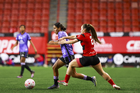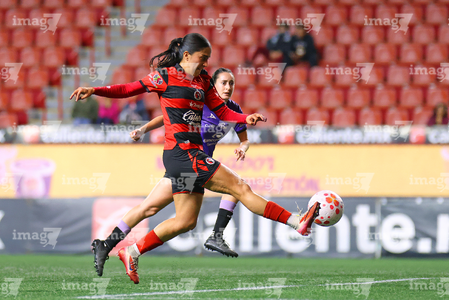 Tijuana, Baja California, 24 de abril de 2026. Alondra García (I), durante el partido correspondiente a la jornada 17 del torneo Clausura 2026 de la Liga BBVA MX Femenil, entre las Xolas de Tijuana y las Cañoneras del Mazatlán FC, realizado en el estadio Caliente. Foto: Imago7/Alejandro Gutiérrez Mora