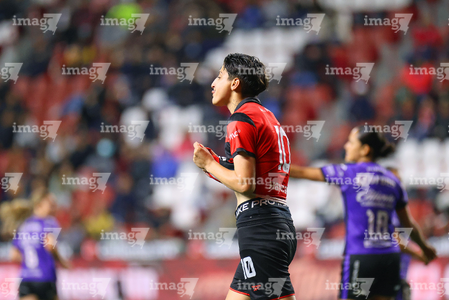 Tijuana, Baja California, 24 de abril de 2026. Fabiola Ibarra en festejo de gol, durante el partido correspondiente a la jornada 17 del torneo Clausura 2026 de la Liga BBVA MX Femenil, entre las Xolas de Tijuana y las Cañoneras del Mazatlán FC, realizado en el estadio Caliente. Foto: Imago7/Alejandro Gutiérrez Mora