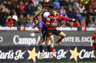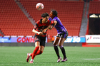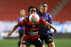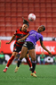 Tijuana, Baja California, 24 de abril de 2026. Amogelang Motau y Lucy Ortiz, durante el partido correspondiente a la jornada 17 del torneo Clausura 2026 de la Liga BBVA MX Femenil, entre las Xolas de Tijuana y las Cañoneras del Mazatlán FC, realizado en el estadio Caliente. Foto: Imago7/Alejandro Gutiérrez Mora