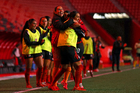 Tijuana, Baja California, 24 de abril de 2026. Jugadoras de Mazatlán , durante el partido correspondiente a la jornada 17 del torneo Clausura 2026 de la Liga BBVA MX Femenil, entre las Xolas de Tijuana y las Cañoneras del Mazatlán FC, realizado en el estadio Caliente. Foto: Imago7/Alejandro Gutiérrez Mora
