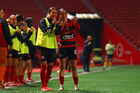 Tijuana, Baja California, 24 de abril de 2026. Jugadoras de Xolas , durante el partido correspondiente a la jornada 17 del torneo Clausura 2026 de la Liga BBVA MX Femenil, entre las Xolas de Tijuana y las Cañoneras del Mazatlán FC, realizado en el estadio Caliente. Foto: Imago7/Alejandro Gutiérrez Mora