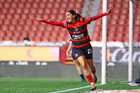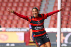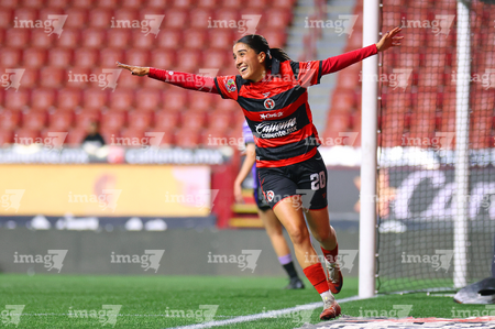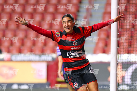 Tijuana, Baja California, 24 de abril de 2026. Daniela Carrandi en festejo de gol, durante el partido correspondiente a la jornada 17 del torneo Clausura 2026 de la Liga BBVA MX Femenil, entre las Xolas de Tijuana y las Cañoneras del Mazatlán FC, realizado en el estadio Caliente. Foto: Imago7/ David Vega