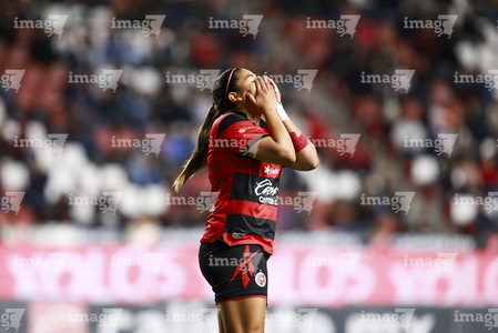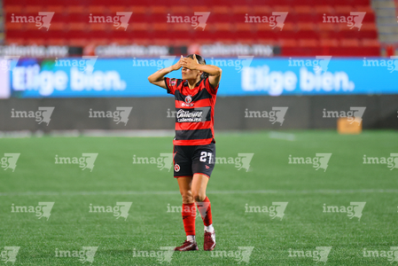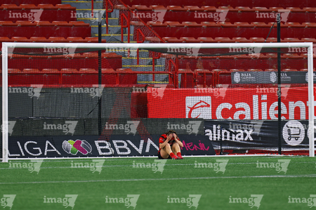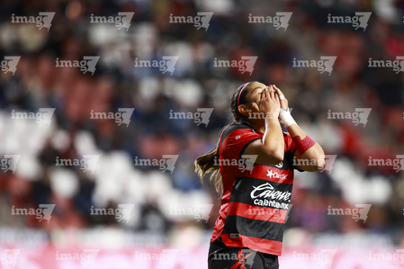 Tijuana, Baja California, 24 de abril de 2026. Dana Sandoval en lamento, durante el partido correspondiente a la jornada 17 del torneo Clausura 2026 de la Liga BBVA MX Femenil, entre las Xolas de Tijuana y las Cañoneras del Mazatlán FC, realizado en el estadio Caliente. Foto: Imago7/Alejandro Gutiérrez Mora