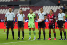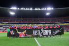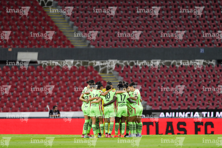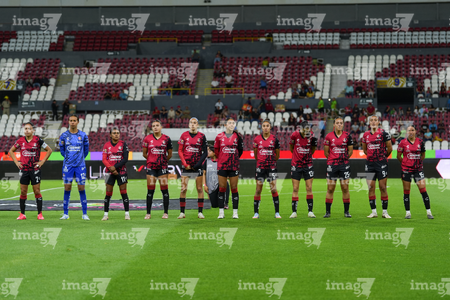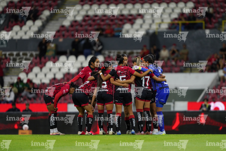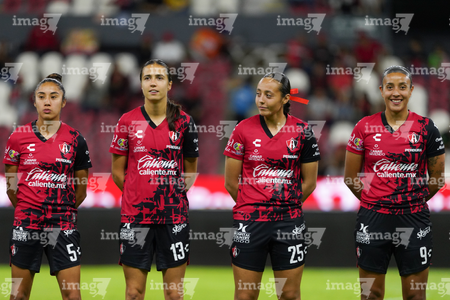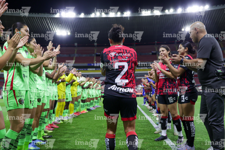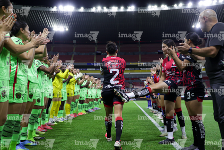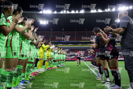 Guadalajara, Jalisco, 24 de abril de 2026. Protocolo, durante el partido correspondiente a la jornada 17 del torneo Clausura 2026 de la Liga BBVA MX Femenil, entre las Rojinegras del Atlas y las Bravas de FC Juárez, realizado en el estadio Jalisco. Foto: Imago7/Andrés Sepúlveda