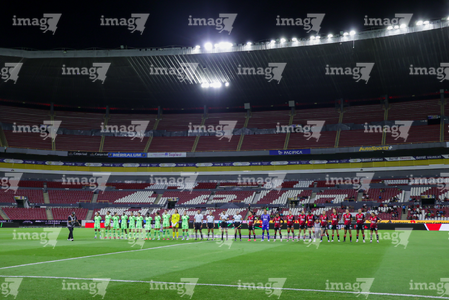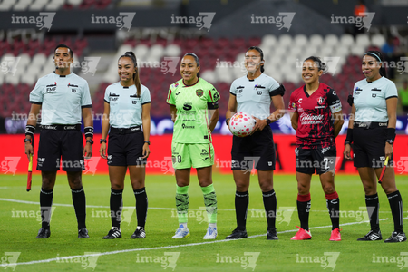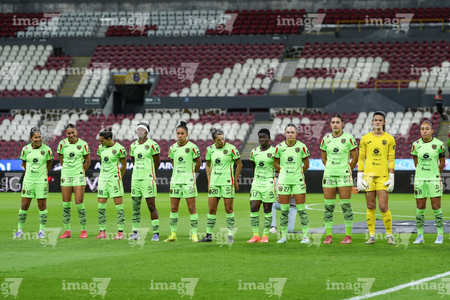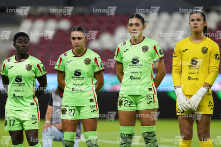 Guadalajara, Jalisco, 24 de abril de 2026. Protocolo, durante el partido correspondiente a la jornada 17 del torneo Clausura 2026 de la Liga BBVA MX Femenil, entre las Rojinegras del Atlas y las Bravas de FC Juárez, realizado en el estadio Jalisco. Foto Imago7/ Jair Terán