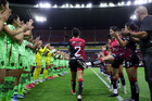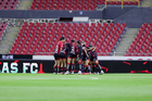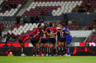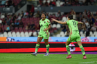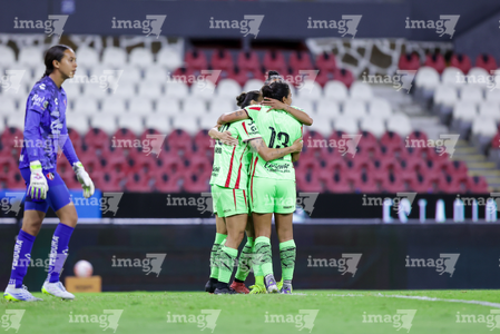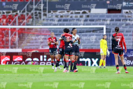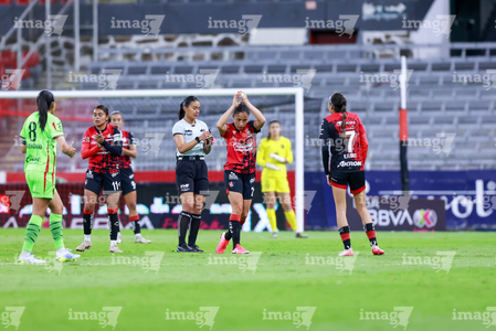 Guadalajara, Jalisco, 24 de abril de 2026. Jugadoras del Atlas femenil, durante el partido correspondiente a la jornada 17 del torneo Clausura 2026 de la Liga BBVA MX Femenil, entre las Rojinegras del Atlas y las Bravas de FC Juárez, realizado en el estadio Jalisco. Foto: Imago7/Andrés Sepúlveda