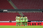 Guadalajara, Jalisco, 24 de abril de 2026. Jugadoras del Atlas femenil, durante el partido correspondiente a la jornada 17 del torneo Clausura 2026 de la Liga BBVA MX Femenil, entre las Rojinegras del Atlas y las Bravas de FC Juárez, realizado en el estadio Jalisco. Foto Imago7/ Jair Terán