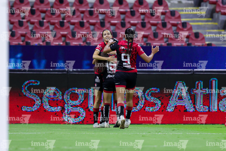 Guadalajara, Jalisco, 24 de abril de 2026. Aisha Solorzano en festejo de gol, durante el partido correspondiente a la jornada 17 del torneo Clausura 2026 de la Liga BBVA MX Femenil, entre las Rojinegras del Atlas y las Bravas de FC Juárez, realizado en el estadio Jalisco. Foto: Imago7/Andrés Sepúlveda