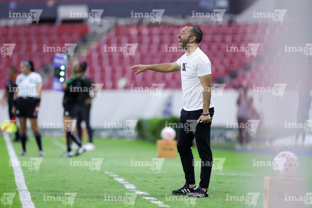 Guadalajara, Jalisco, 24 de abril de 2026. Juan Pablo Alfaro, director técnico, durante el partido correspondiente a la jornada 17 del torneo Clausura 2026 de la Liga BBVA MX Femenil, entre las Rojinegras del Atlas y las Bravas de FC Juárez, realizado en el estadio Jalisco. Foto: Imago7/Andrés Sepúlveda