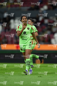 Guadalajara, Jalisco, 24 de abril de 2026. Maritza Maldonado en festejo de gol, durante el partido correspondiente a la jornada 17 del torneo Clausura 2026 de la Liga BBVA MX Femenil, entre las Rojinegras del Atlas y las Bravas de FC Juárez, realizado en el estadio Jalisco. Foto Imago7/ Jair Terán