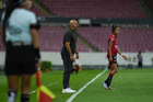 Guadalajara, Jalisco, 24 de abril de 2026. Oscar Fernández, director técnico, durante el partido correspondiente a la jornada 17 del torneo Clausura 2026 de la Liga BBVA MX Femenil, entre las Rojinegras del Atlas y las Bravas de FC Juárez, realizado en el estadio Jalisco. Foto: Imago7/Andrés Sepúlveda