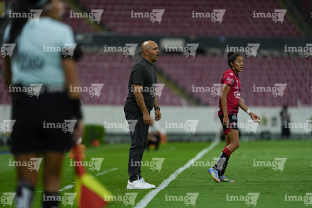 Guadalajara, Jalisco, 24 de abril de 2026. Oscar Fernández, director técnico, durante el partido correspondiente a la jornada 17 del torneo Clausura 2026 de la Liga BBVA MX Femenil, entre las Rojinegras del Atlas y las Bravas de FC Juárez, realizado en el estadio Jalisco. Foto Imago7/ Jair Terán