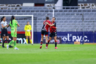 Guadalajara, Jalisco, 24 de abril de 2026. Karime Abud anota gol, durante el partido correspondiente a la jornada 17 del torneo Clausura 2026 de la Liga BBVA MX Femenil, entre las Rojinegras del Atlas y las Bravas de FC Juárez, realizado en el estadio Jalisco. Foto Imago7/ Jair Terán