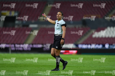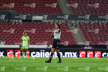 Guadalajara, Jalisco, 24 de abril de 2026. Itzel Hernández Fuentes, árbitra central, durante el partido correspondiente a la jornada 17 del torneo Clausura 2026 de la Liga BBVA MX Femenil, entre las Rojinegras del Atlas y las Bravas de FC Juárez, realizado en el estadio Jalisco. Foto: Imago7/Andrés Sepúlveda